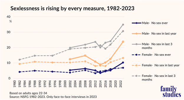 In the UK and Germany, a similar "sexual recession" is being seen, driven by the replacement of physical intimacy with digital entertainment and pornography.